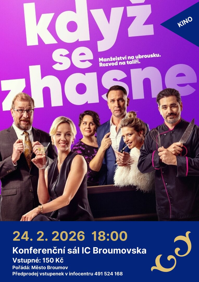 Město Broumov zve do kina na novou česko-slovenskou komedii Když se zhasne.