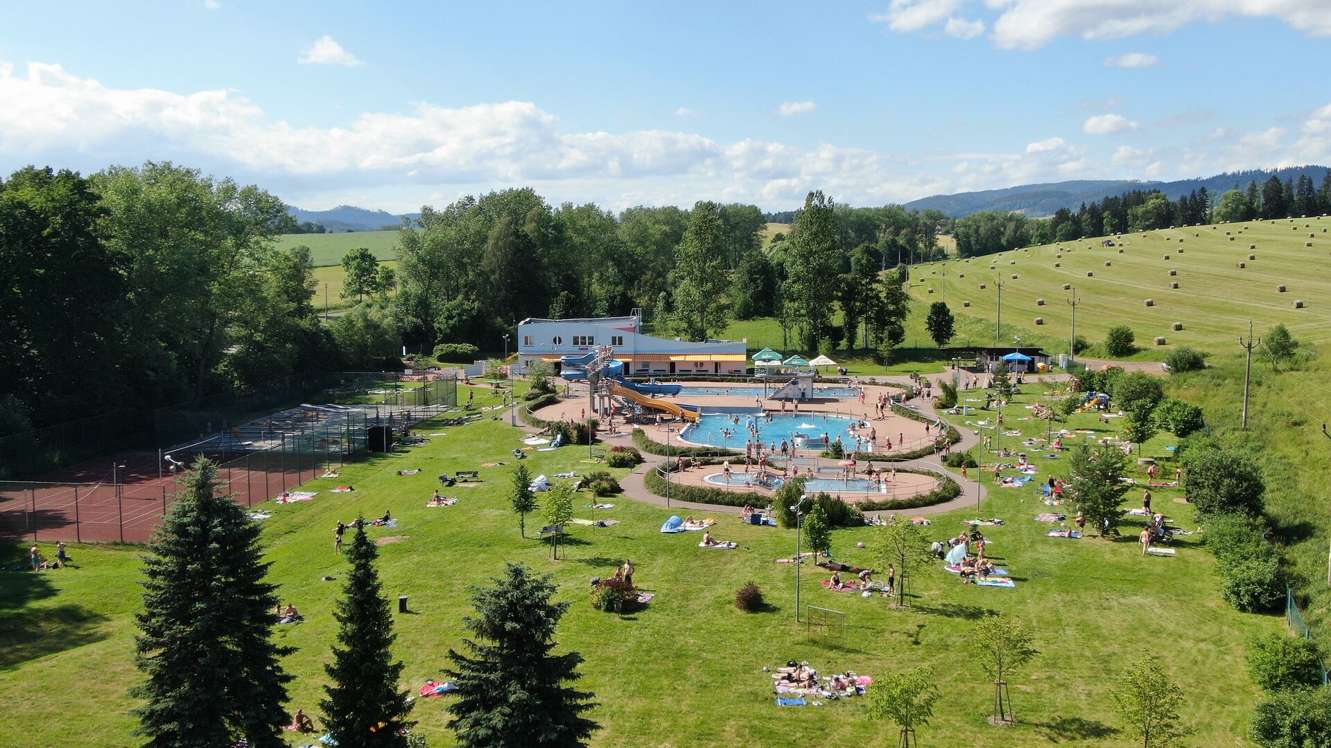 Okolo bazénů je množství laviček k sezení, u rychlého občerstvení jsou k dispozici všem návštěvníkům lavice se stoly a slunečníky