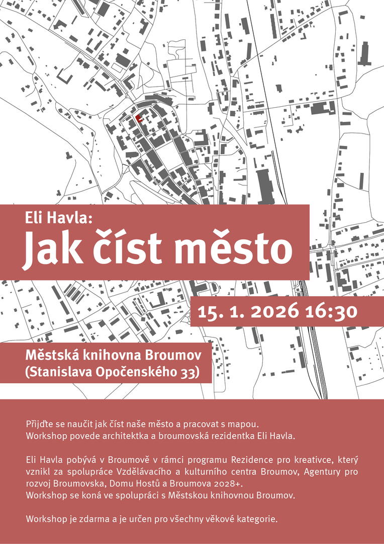 Jak se orientovat v prostoru, chápat souvislosti mezi ulicemi, domy a veřejnými místy a číst město jako živý organismus? Přijďte na workshop Jak číst město, kde se naučíte pracovat s mapou a dívat se na Broumov z nové perspektivy.