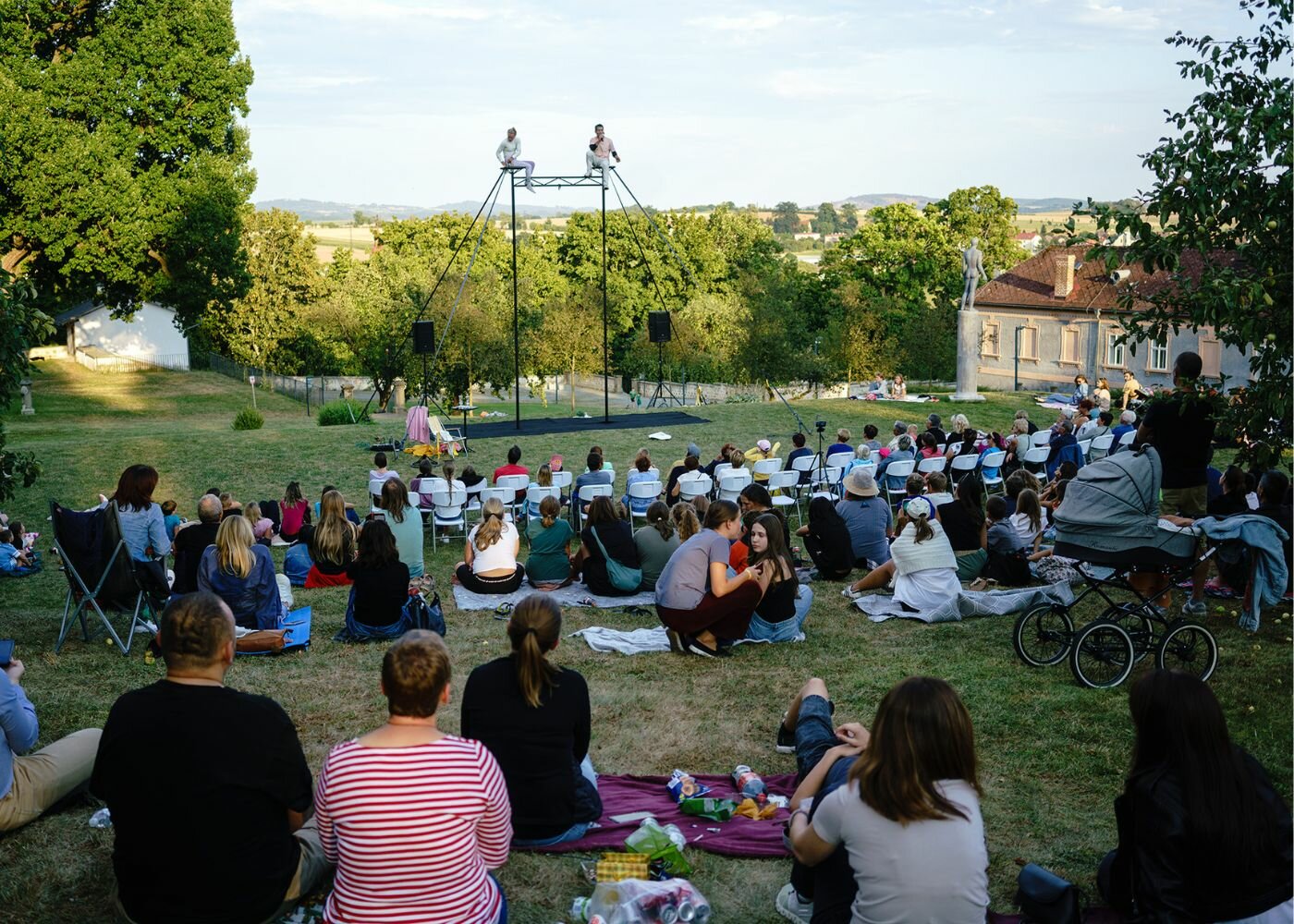 Večer vyvrcholil novocirkusovým představením Tyč on the Beach v klášterní zahradě. Duet Pavlíny Podzimkové a Tomáše Brta přinesl hravou letní koláž plnou akrobacie, humoru a nostalgie po prázdninových romancích. Publikum sledovalo představení z trávníku a podpořilo umělce dobrovolným vstupným do klobouku.