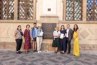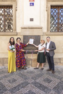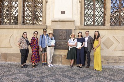 Po osmi měsících usilovné práce jsme slavnostně doručili přihlášku čili Bid Book do Prahy na ministerstvo kultury a naposledy na ni pro štěstí poklepali našimi poutnickými holemi.