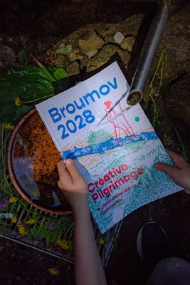 Moc nás potěšilo, že jsme mohli přihlášku odevzdat společně s týmem České Budějovice 2028. Symbolicky jsme zvolili 31. květen, který je Dnem otevírání studánek, protože péče o vodu v krajině je jedním z našich programových témat. Náš Bid Book jsme nejprve rituálně pokřtili společně s dětmi z Broumovska v pramenu Samaritánky pod horou Ostaš, a pak jej na křídlech broumovské labutě vyslali do rukou mezinárodní poroty.