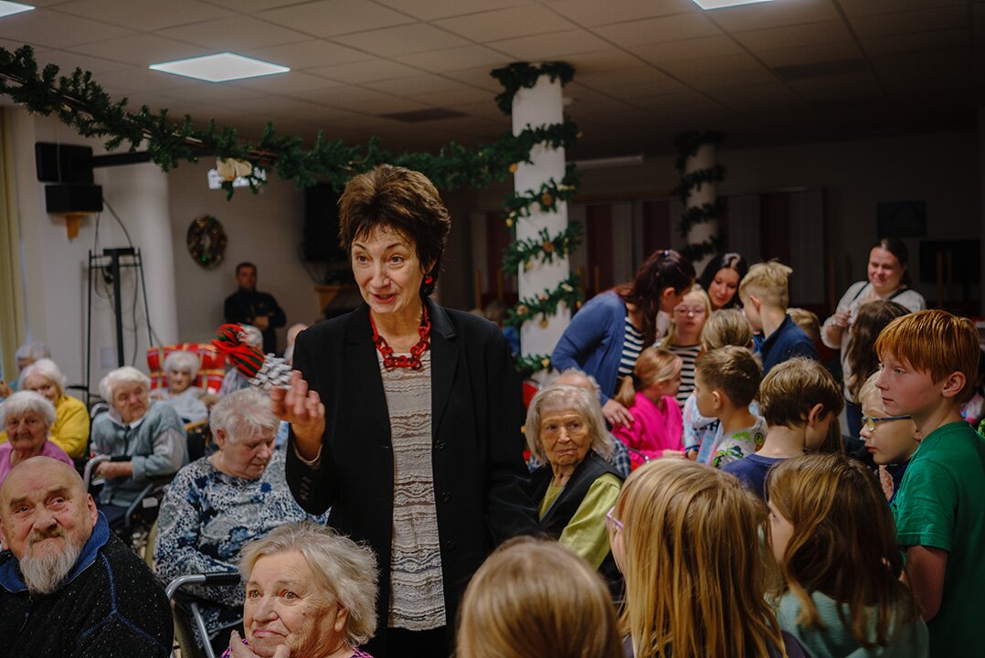 Od rána do Domova důchodců proudilo množství návštěvníků. Dopoledne to byly především školy a školky z blízkého okolí, které si připravily hudební vystoupení. O kreativitu tu nebyla nouze a děti neukázaly jen hudební a herecké nadání, ale vyrobily pro místní seniory a seniorky i dárečky v podobě dekorací a přáníček. ZŠ Police nad Metují k písničce o perníku upekla dokonce vlastní perník, na kterém si seniorky a senioři společně pochutnali. Dětský zpěv a smích rozveselil místní seniory a seniorky a přinesl do domova vánoční atmosféru. Ukázalo se, že to, o čem na konci svého vystoupení mluvily děti z komunitní školy Mycelinka, nejsou jen přání – v ten den jsme společně ukázali, že vřelá slova, dobré skutky a čas strávený spolu, jsou více než materiální dary. Ale ani ty nakonec nechyběly. Přání, která místní senioři sepsali, se splnily do posledního! Dárky nosili návštěvníci do DD po celý den a měli je možnost předat do ruky přímo těm, kteří si o něj napsali. V dnešní konzumní společnosti se přání typu krém na obličej, čokoláda nebo lahvové pivo, mohly zdát příliš malé nebo nedůležité, ale kdybyste viděli, jakou radost seniorům udělaly, uvědomili byste si stejně jako my, že o velikosti nebo ceně to není.