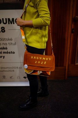 Letáky předávám a s kolegyní Pavlou Jenkovou z kandidatury vybíráme místo, kam postavit náš rollup neboli stojan v barvách kandidatury Broumova 2028. “Dáme ho před zrcadlo a budeme ho mít dvakrát,” napadá mě geniální myšlenka, načež mě Pavla upozorňuje, že je stojan potištěný jen z jedné strany. Tak nic.