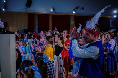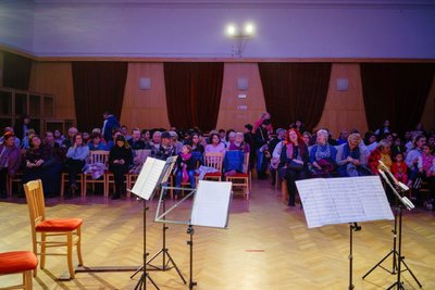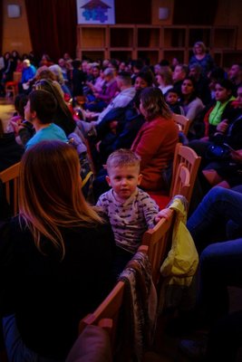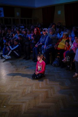 “Musíme vás poprosit, běžte ještě z sálu, teď bude probíhat generálka,” vyprovází jeden z pořadatelů několik rodičů, dveře se zavírají. Běžím domů udělat večeři a odevzdat menší z dětí, vracíme se s dcerou těsně před šestou. Je už tma a Střelnice září a šumí do noci jako včelí úl. Vybíháme po schodech do předsálí a dál to nejde. A není to jen špunt ve dveřích. Celý sál je plný až ke stropu, sedí se i podél stěn a na zemi. Na druhé stráně sálu vidím známé tváře, přibíháme na poslední chvíli a sedáme si na podlahu.