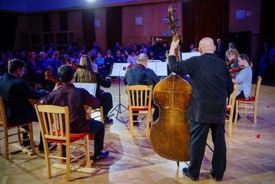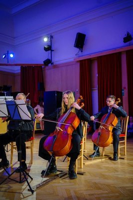 Nejprve malému smyčcovému orchestru, který navzdory neposedným dětem v sále, odehraje soustředěně a krásně skladbu Jana Křtitele Vaňhala a větu Bachova koncertu. Romské kapele Gypsy Čhave pod vedením charismatické Evy Kroupové. Malým tanečníkům z projektu OnStage, kteří se pustili do jistě náročné choreografie o dvaceti lidech a v návalech emocí si ani nevychutnají potlesk publika a horem pádem prchají z pódia.