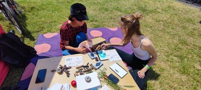 U stánku nás doprovázela umělkyně Eva Horská, která připravila workshop s kartografikou. Eva se stará s manželem Jakubem pod značkou Upupæpop o ilustrace a grafický vizuál naší kandidatury a bylo milé, že nám dovolila nahlédnout do jejího ateliéru a něco nového si vyzkoušet a naučit se.