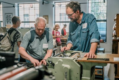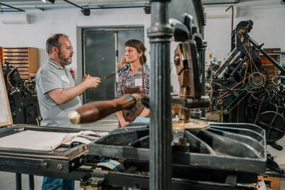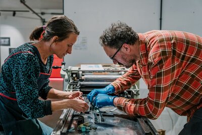 Kuba s Evou sami sbírají historické tiskařské stroje, které dále využívají pro svou autorskou tvorbu a plánují dílnu zpřístupnit i veřejnosti ve formě workshopů, uměleckých rezidencí a výukových kurzů. Konference pro ně byla skvělou příležitostí navázat nové kontakty a načerpat cenné zkušenosti.